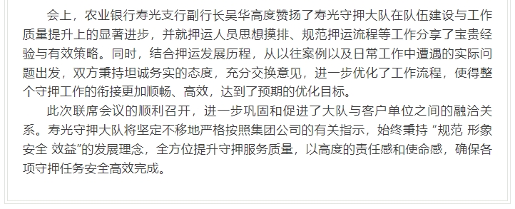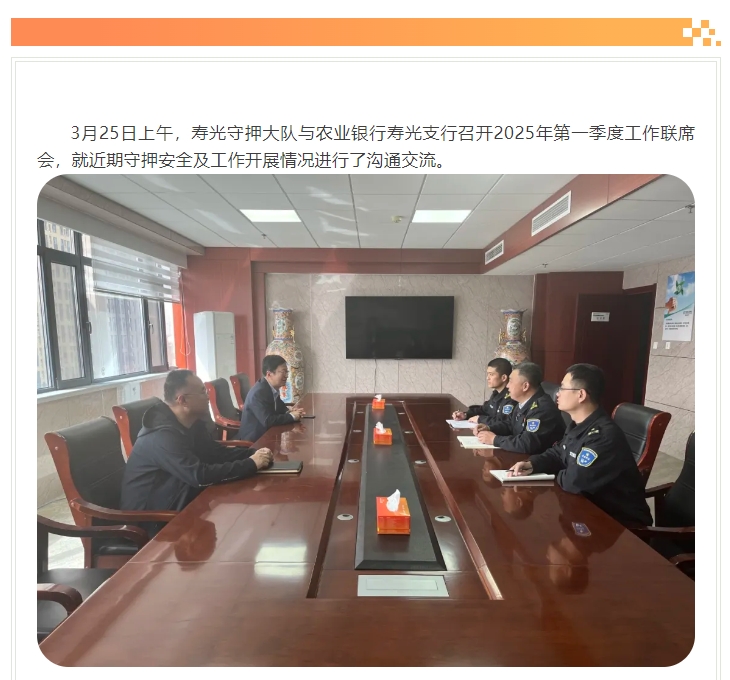 上一篇:高密守押大队与中国银行高密支行召开押运工作联席...